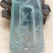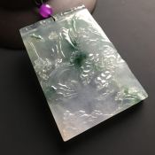 冰种飘花山水牌翡翠吊坠 尺寸54-43-7毫米