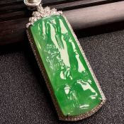 老坑料高冰种 山水牌翡翠吊坠