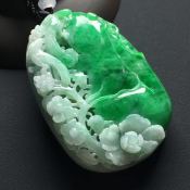 巧雕带色鸟语花香翡翠挂件 尺寸63-47-16毫米