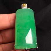 阳绿无事牌翡翠吊坠 裸石:39*19