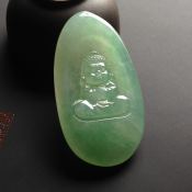精雕阳绿佛公 翡翠吊坠 规格:66*43*9mm