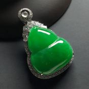 冰种满绿 葫芦翡翠吊坠 18k金*钻石镶嵌 尺寸:40-25.5-12.5*裸石25-22.5-7毫米