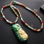 糯冰种黄加绿达摩 翡翠吊坠 尺寸84-35-16毫米