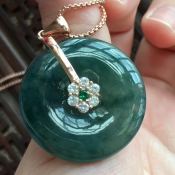 冰晴飘花平安扣 翡翠挂件 底色清雅 晶莹细腻