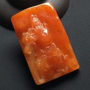 巧雕红翡忠义关公 翡翠吊坠 尺寸:62-38-13.5毫米