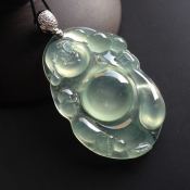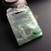 冰种飘绿悠然自得翡翠吊坠 水润细腻 尺寸56-6.5毫米