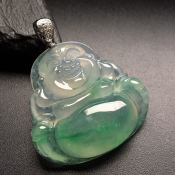 老坑冰糯种满色 虚空藏菩萨 翡翠吊坠