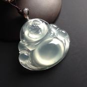 冰种荧光佛公 翡翠吊坠 裸石尺寸36-39-8毫米