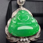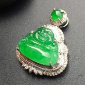阳绿佛公 翡翠吊坠 真金真钻镶嵌 颜色超正