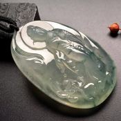 冰飘花莲花观音 翡翠挂件 尺寸: 67-45-12mm