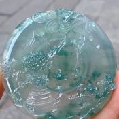 老坑料高冰种飘蓝水花翡翠挂件 缅甸天然翡翠《山水牌》挂件