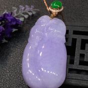 粉紫大福瓜福禄寿 翡翠吊坠 18k金镶嵌