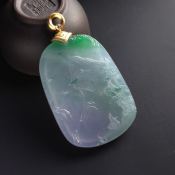 冰种春带彩淡泊人生 翡翠吊坠 裸石尺寸51-34-6.5毫米