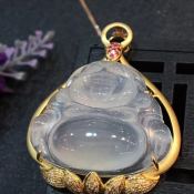 大个佛公 翡翠吊坠 18k金伴靓钻镶嵌