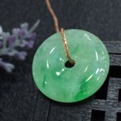 冰种阳绿翡翠吊坠 平安扣翡翠吊坠