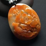 巧雕黄加绿花开富贵翡翠吊坠 尺寸:56-35-6.4毫米
