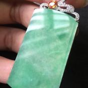冰种阳绿大素牌 翡翠挂件 尺寸:60.5:27.5:7.5mm