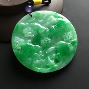 阳绿山水牌 翡翠吊坠 尺寸51-6毫米