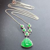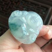 冰种飘花 逍遥佛翡翠吊坠 白金扣 尺寸42-23-8毫米