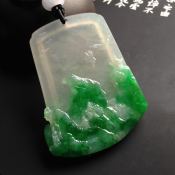 冰种飘翠山水牌 翡翠吊坠 尺寸53-40-5毫米