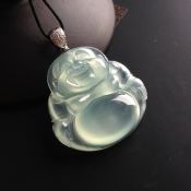 冰种荧光佛公 翡翠吊坠 尺寸31-30-6.5毫米