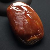巧雕红翡忠义关公翡翠吊坠 尺寸:66-43-11.5毫米