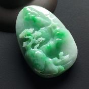 糯冰种飘绿 悠然自得翡翠吊坠 巧雕带色 尺寸:61-42-12.7毫米