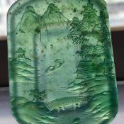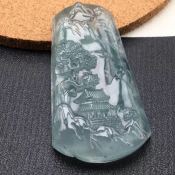 高冰飘花山水牌翡翠吊坠 尺寸:50.7*26.7*8.8