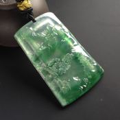 冰种飘翠松下会友翡翠吊坠 尺寸54-36-5毫米