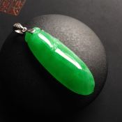 冰种翠绿 竹节吊坠 白金扣 尺寸52-24-7毫米