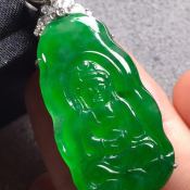 冰满绿观音 翡翠挂件 裸石尺寸33.5*18*3