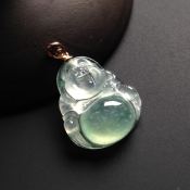 冰种飘翠佛公翡翠吊坠 18K白金扣 裸石28-33-6毫米