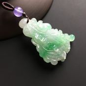 巧雕带色百财翡翠吊坠 尺寸52-33-11毫米