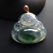 冰带色逍遥佛 翡翠吊坠 尺寸: 42-26.5-9.5mm