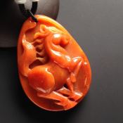 巧雕红翡 缅甸天然马到成功翡翠挂件 尺寸57-42-15毫米