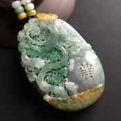 巧雕黄加绿鸟语花香翡翠吊坠 尺寸72-47-13毫米