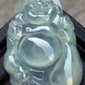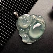 冰种佛公 佛翡翠吊坠 白金扣 尺寸26-32-10毫米