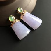 春色无事牌一对翡翠吊坠 18K金真钻镶嵌