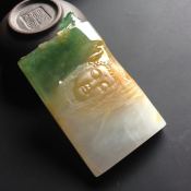 糯冰种带色大日如来 翡翠吊坠 尺寸:51-38.6-6毫米