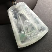 冰种飘花山水牌 翡翠吊坠 尺寸46-39-7.5毫米