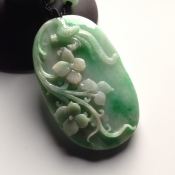 巧雕带色喜上眉梢 翡翠吊坠 尺寸:59-37-10.7毫米