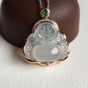 冰种晴水 吊坠翡翠笑佛 18K金镶嵌 裸石 19.5x22x4.3 毫米 整体23.3x24.2x8 毫米