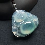 冰种飘花笑佛 翡翠吊坠 尺寸:28.5-31-6.8毫米