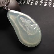 冰花淡泊人生翡翠吊坠 尺寸: 51-32-8mm