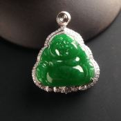 冰种满绿 笑佛翡翠吊坠 18k真金真钻镶嵌 总尺寸: 34-32-11mm 裸石尺寸:32-22-4mm