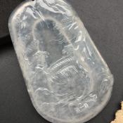 高冰种飘花大业有成 翡翠挂件 尺寸:48.8-31.8-6.3毫米