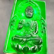 冰种晴绿佛公 佛翡翠吊坠 尺寸:42*32*7.5