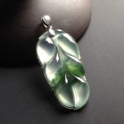 冰种飘花叶子 翡翠挂件 尺寸36-19-5mm
