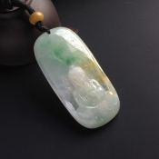 糯冰种黄加绿大日如来翡翠吊坠 尺寸53-25-3.5毫米
