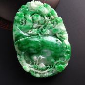 巧雕带色花鸟 翡翠吊坠 尺寸60-42-9毫米